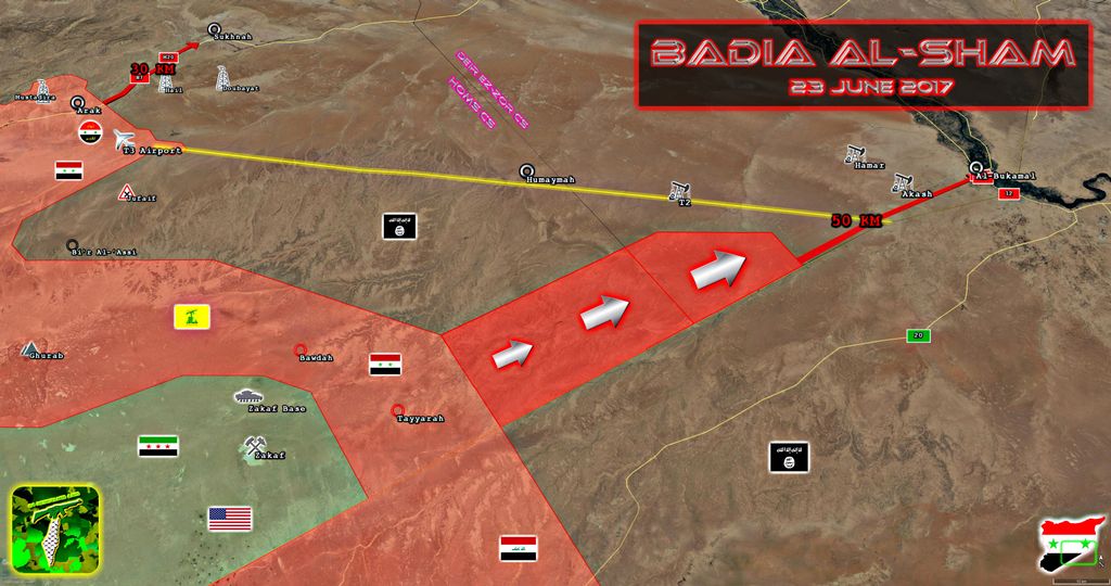 • Недалеко от Абу-Камаля, семь ударов по тактическим подразделениям организации ИГИЛ
