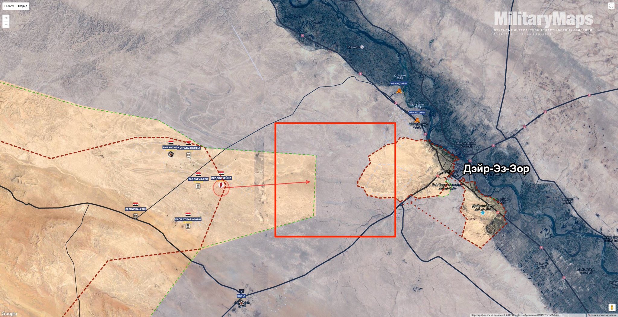 Судя по карте от Ecoross, наступающие охватывают всю локацию полукольцом, с упором основания фигуры в Евфрат, т.е. город будет охвачен с севера, запада и юга, параллельно параллельно пробивается коридор к аэродрому и городу, а внутри мешка оказывается группировка черных, которую также по ходу разрезают как минимум на две части. Вот и размах