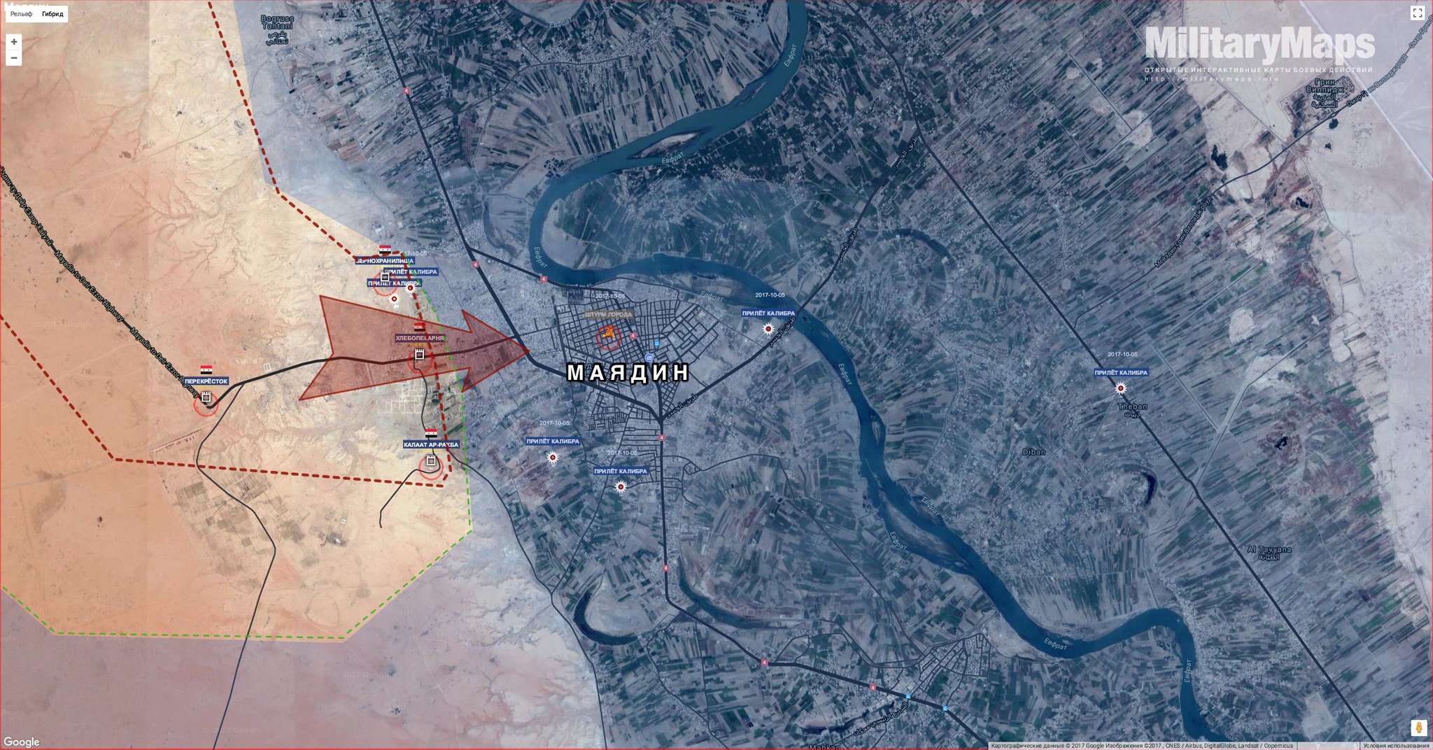 Им удалось взять под контроль рынок в западной части города, цитадель ар-Рахба и район Савами аль-Галяль. В настоящий момент сирийские войска ведут бои за контроль над югом Меядина.