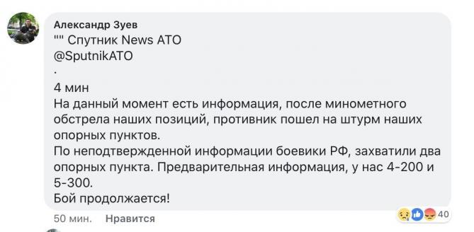 Бои идёт? По твитерам телега распространяют? Зайцево и тд.