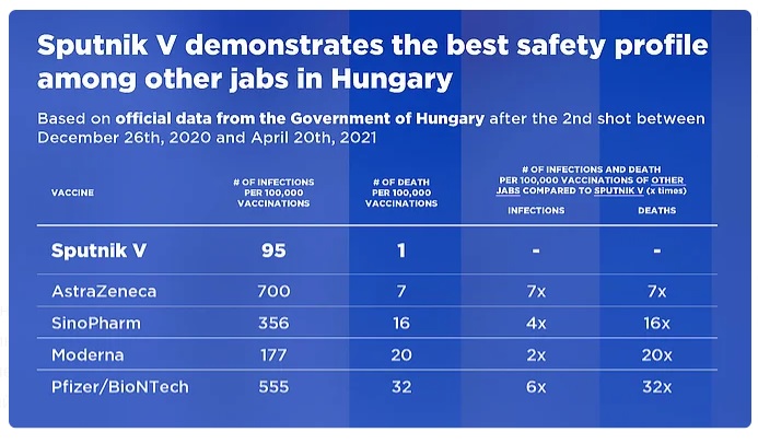 После публикации статистики по препаратам правительство Венгрии заявило, что приведенные данные «ясно показывают, что все вакцины, используемые в Венгрии, обеспечивают эффективную и надежную защиту от инфекции».