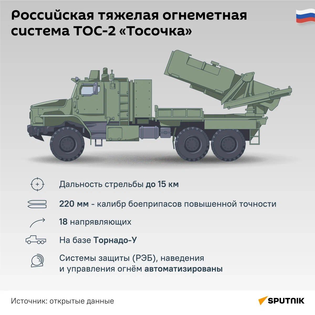 Наше предложение — это разработка высокоточного корректируемого боеприпаса для ТОС-2 «Тосочка», которая уже обладает автоматизированной системой управления огнем и собственным краном-манипулятором для ускорения перезарядки, и способна вести огонь на бо́льшие расстояния.