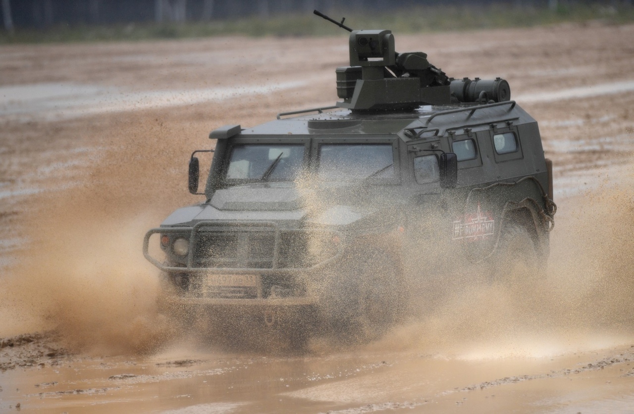 «В режиме дистанционного управления «Бумеранг» может двигаться вперед и назад, поворачивать башню и ствол. Кроме того, на экране отображаются показатели запаса топлива и температуры масла» - сообщил Александр Красовицкий.