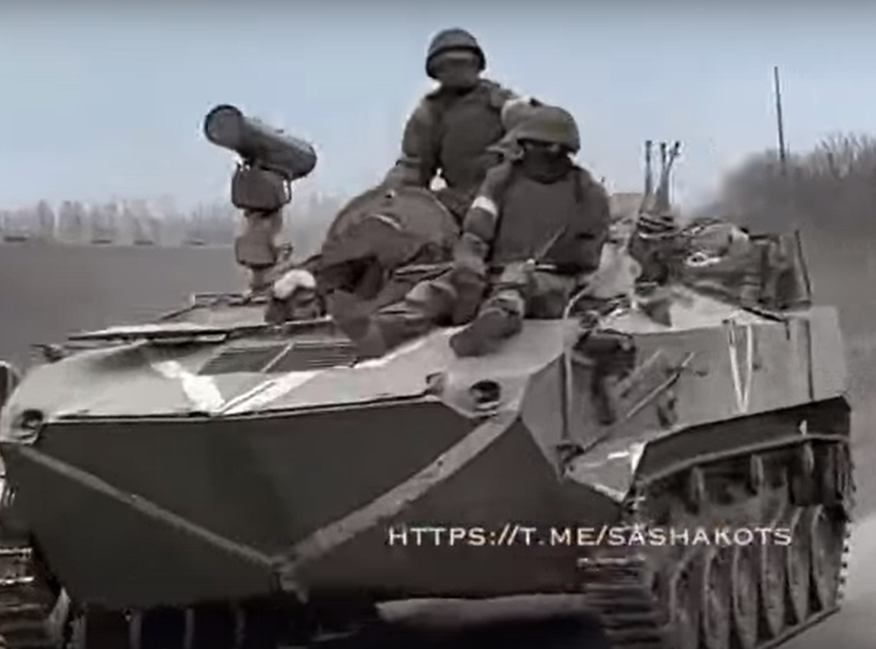 Видеокадры работы боевой машины ПТРК 9К114 «Штурм-С» и переносных ПТРК «Фагот» в зоне проведения СВО на Украине.