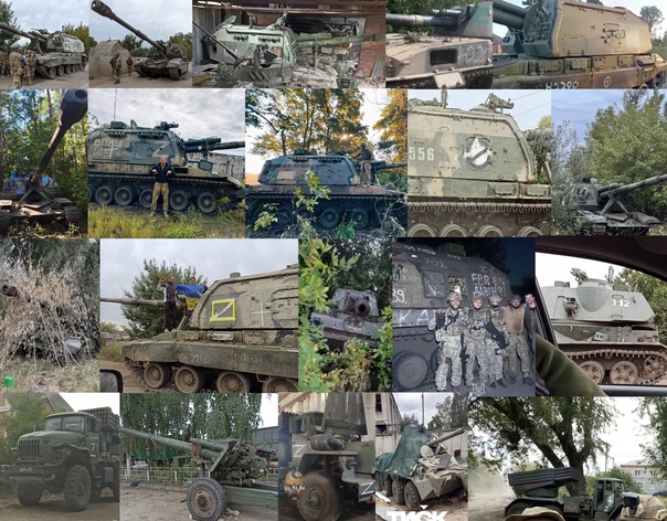 Раз уже пошли разговоры, что якобы наши побросали техники на бригаду, то давайте я приведу вот эти 3 коллажа, составленные ищущими и подсчитывающими. Сделаны из запощенных ВСУ фото и видео за период наступления под Балаклеей и Изюмом.