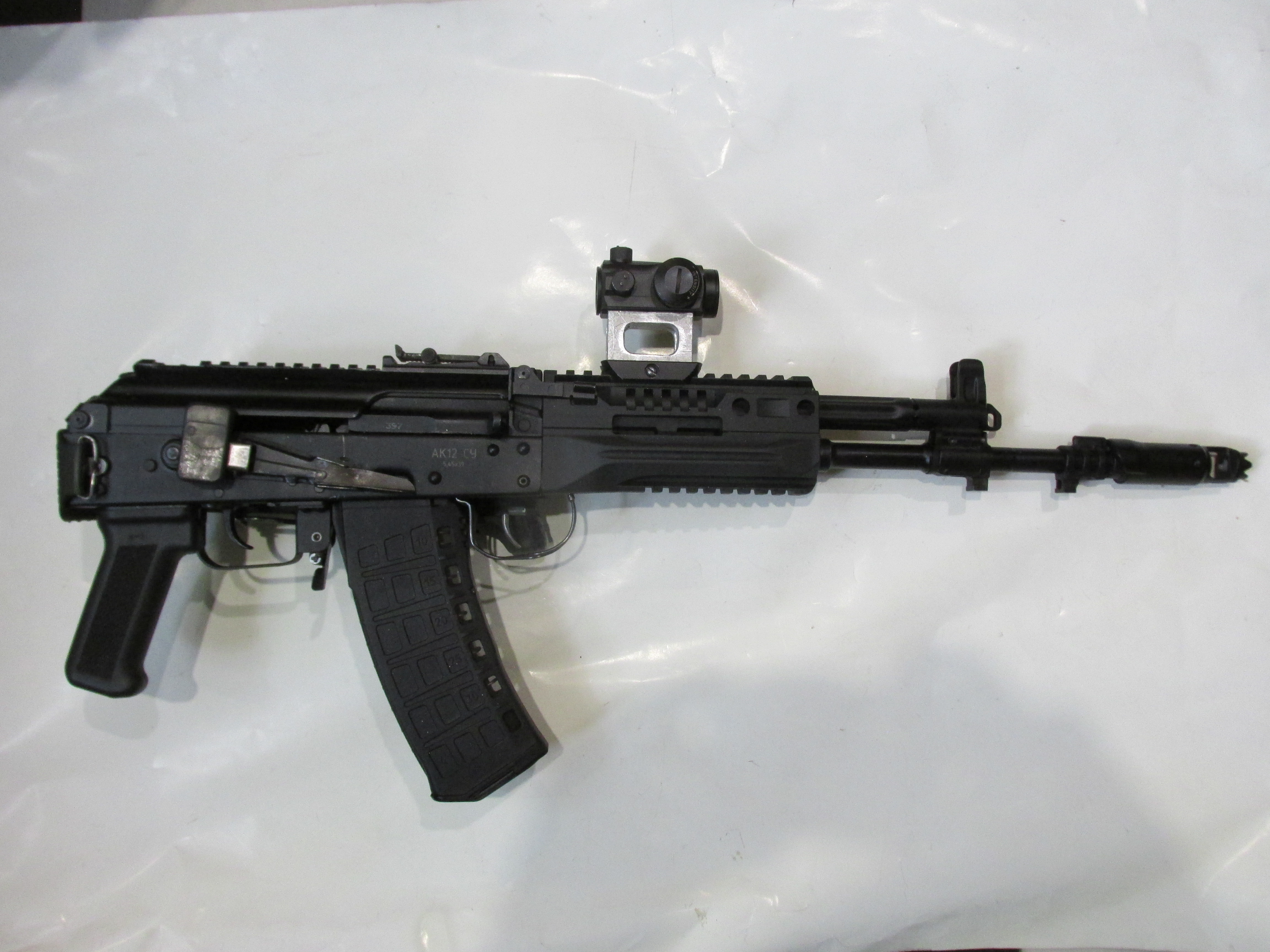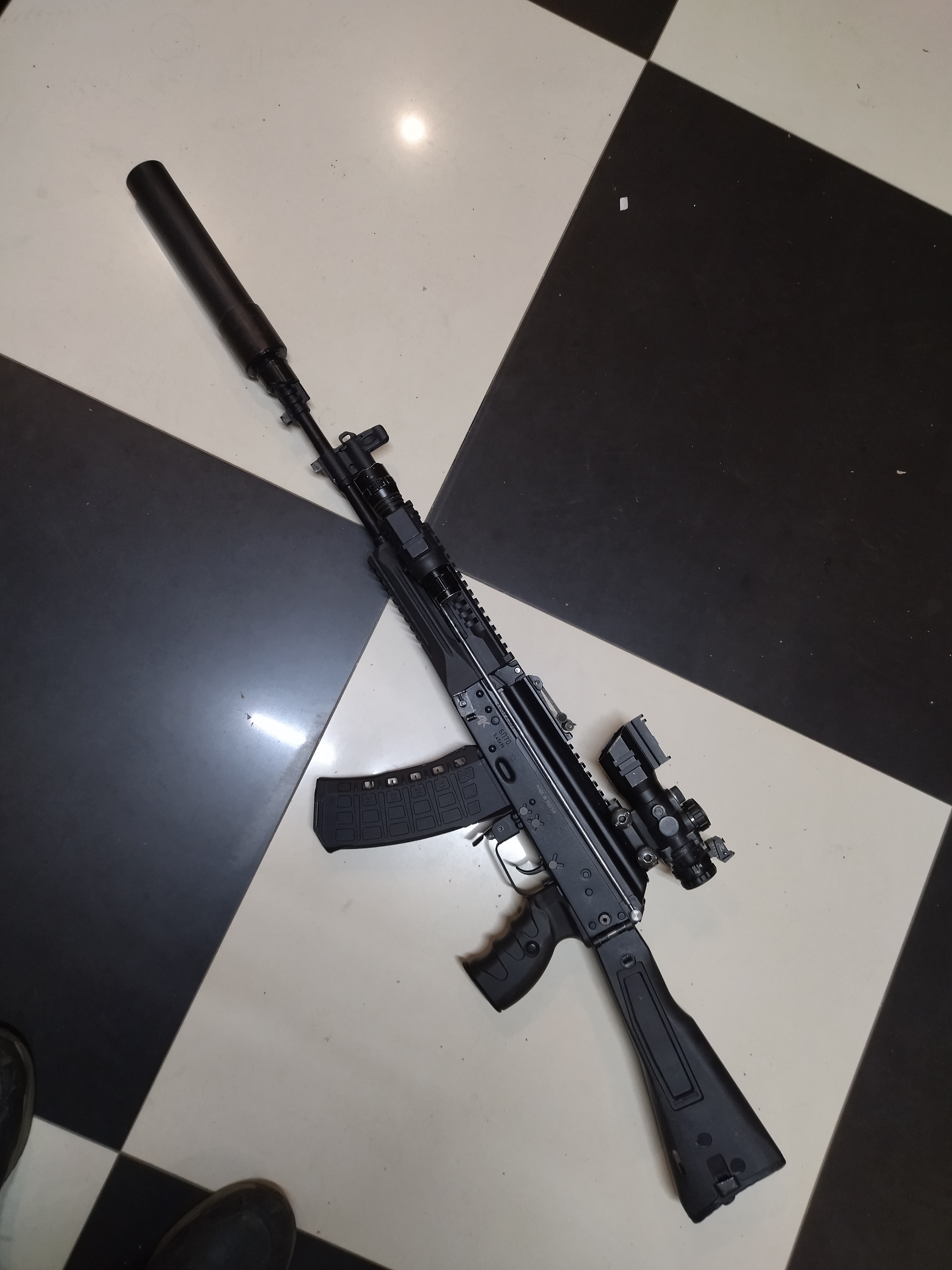 Таки дульное устройство по образу ксюхи. Ибо дует 5.45 с 200мм ствола безбожно. Или банку ставить. Однако по массе далеко сильно от той же ксюхи не ушел.