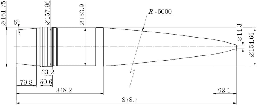 Берем отечественный 152 мм калибр орудий, диаметр канала ствола 152,4 мм + 3,05 мм (глубина нарезов в 1 % для гаубиц), диаметр по дну нарезов = 155,45 мм. Для пушек + 6,1 мм (глубина нарезов в 2 % для пушек), диаметр по дну нарезов = 158,5 мм.