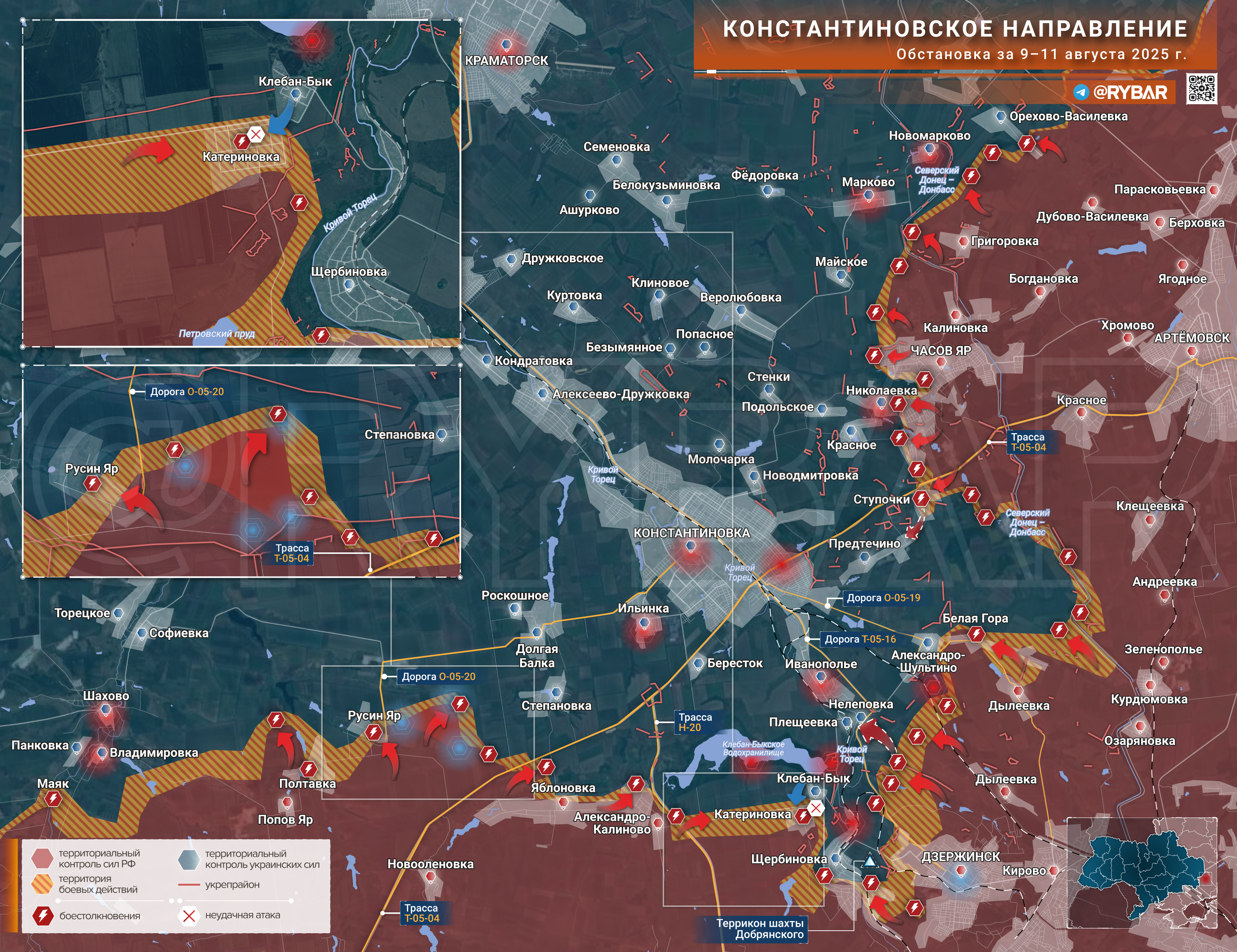 Российские войска стремятся выровнять линию фронта на рубеже Катериновка — Клебан-Бык — Дылеевка, сформировав тем самым плацдарм для наступления на Константиновку с юга.