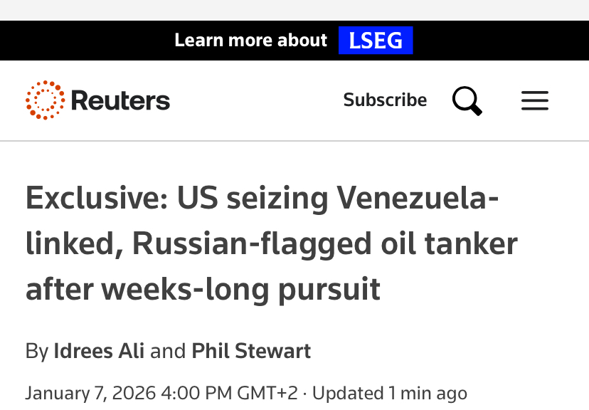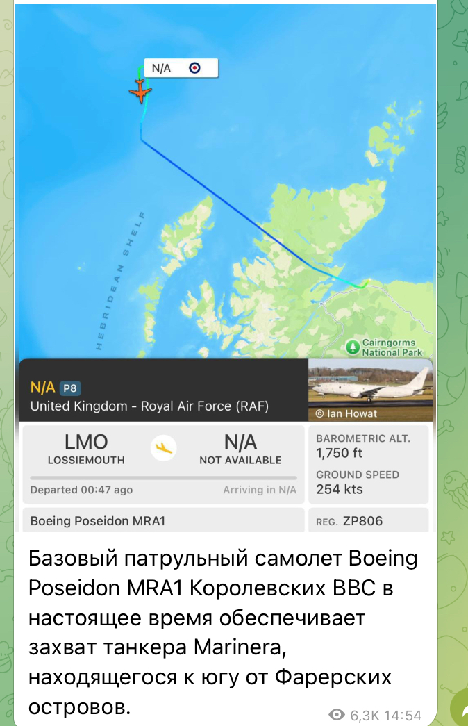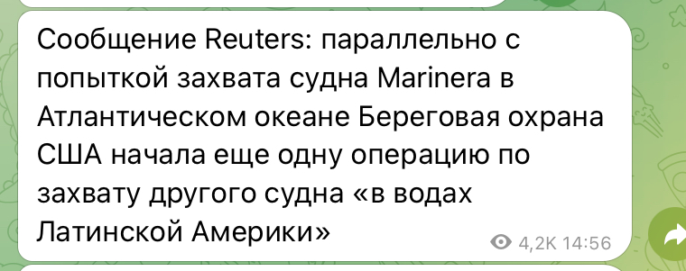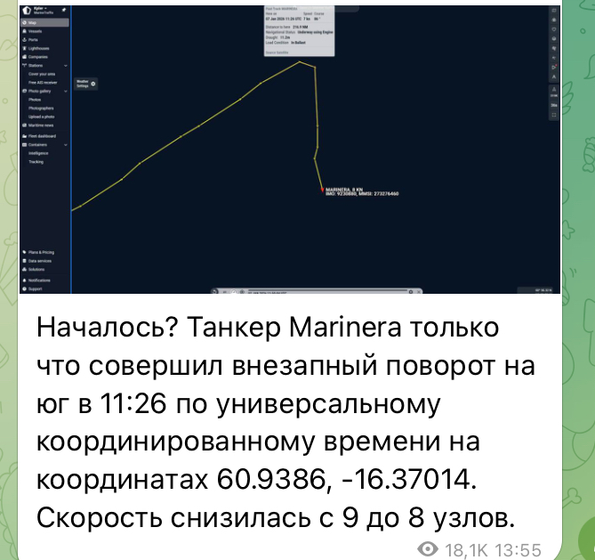 Журналисты пишут, что танкер Маринера, перешедший под российский флаг, пытались захватить. Но тамошний шторм пока не позволяет осуществить захват.