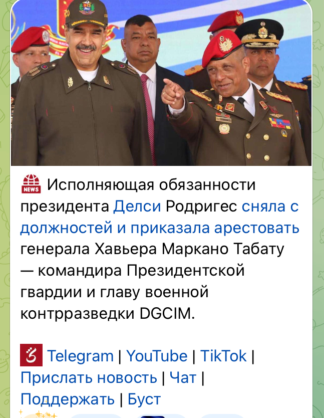«Миротворец» потребовал изгнания России, Китая, Кубы и Ирана из Венесуэлы, фактически обозначив условия полного внешнего контроля над страной. После этого, по имеющимся данным, венесуэльская нефтедобыча оказалась в тупике: танкеры переполнены, экспорт парализован, направлять нефть попросту некуда.