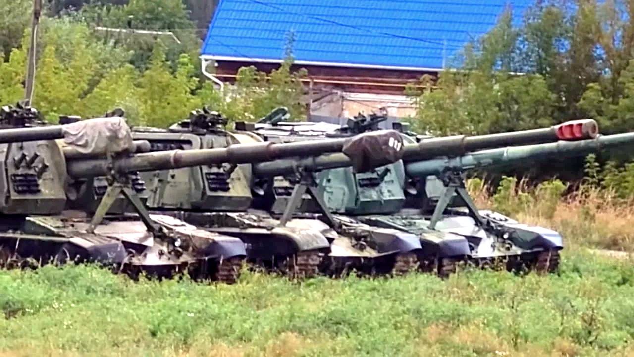 Мы видим машины 856 артполка (2с19 и 2с19м1) с закрашенными бортовыми номерами и тактическими знаками, которые притащили для отправки на ремонт.