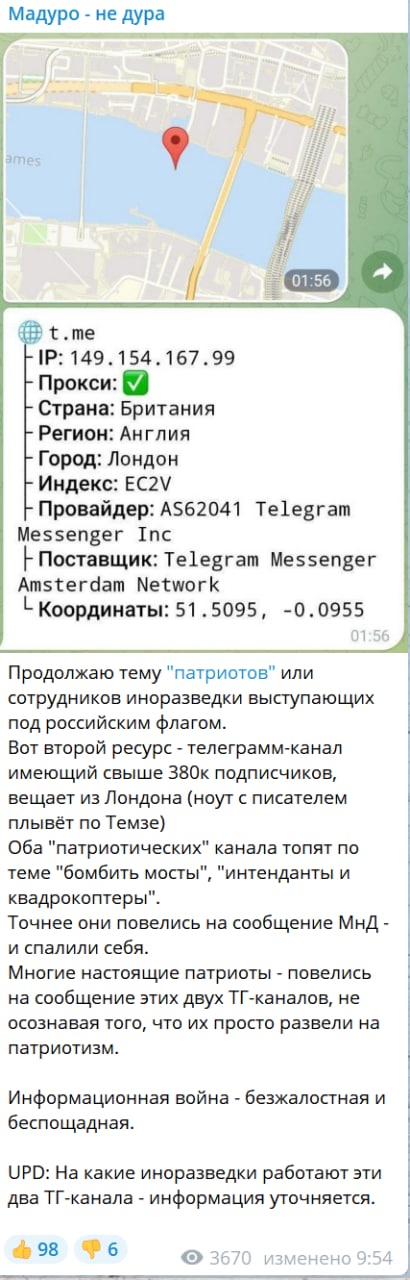 @apleonkov, мы поможем в охоте на ведьм. Записывай: редакция ТГ-канала @rybar находится в Германии, если верить нашему IP-адресу. 🙃