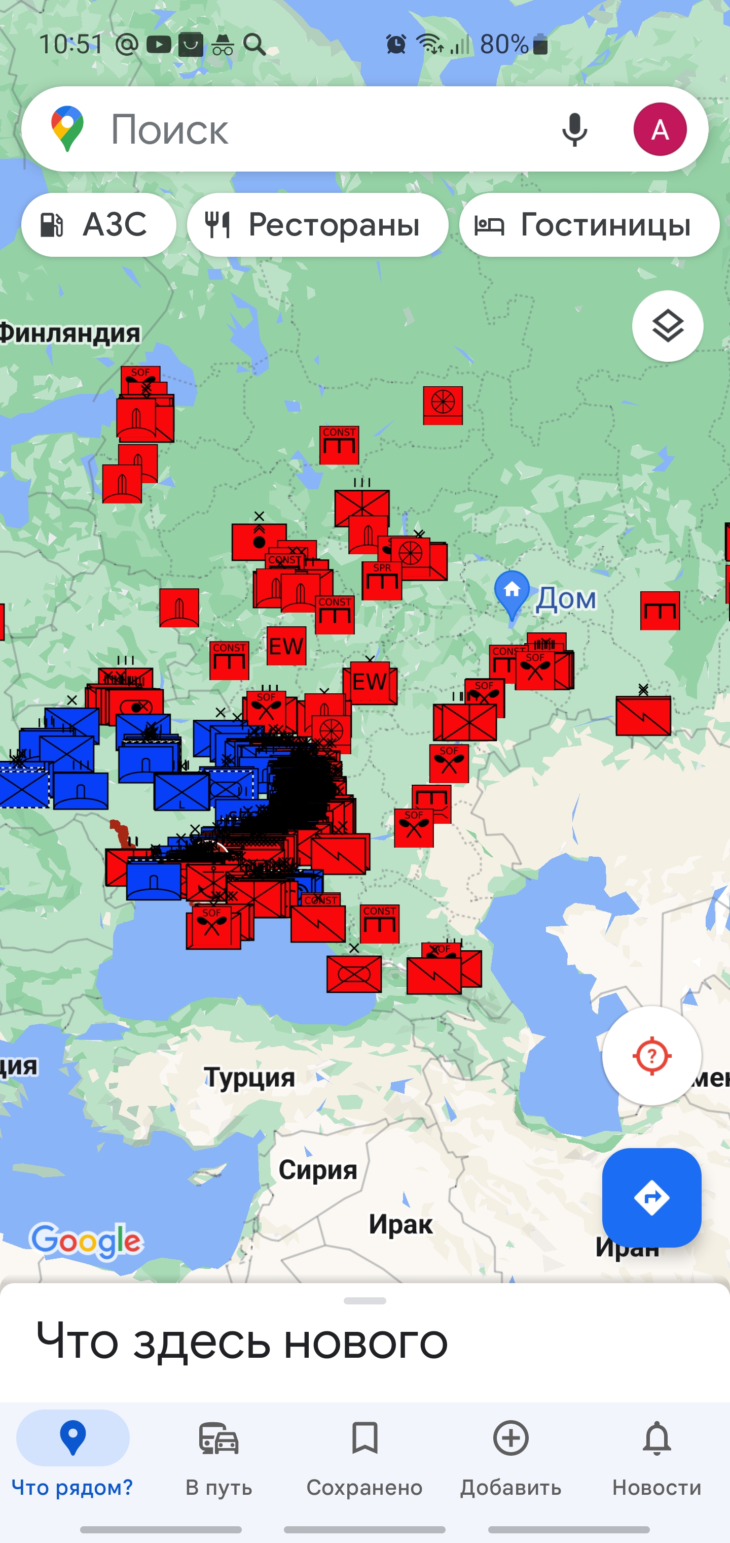 Очень интересная вещь. Сегодня совершенно случайно гугл выдал мне историю моих поездок. Так вот на карте моего автомобильного путешествия в Крым гунл выдал расположение войск. Я не просил, карта автоматически подстриглась под маршрут поездки. Привожу скрин